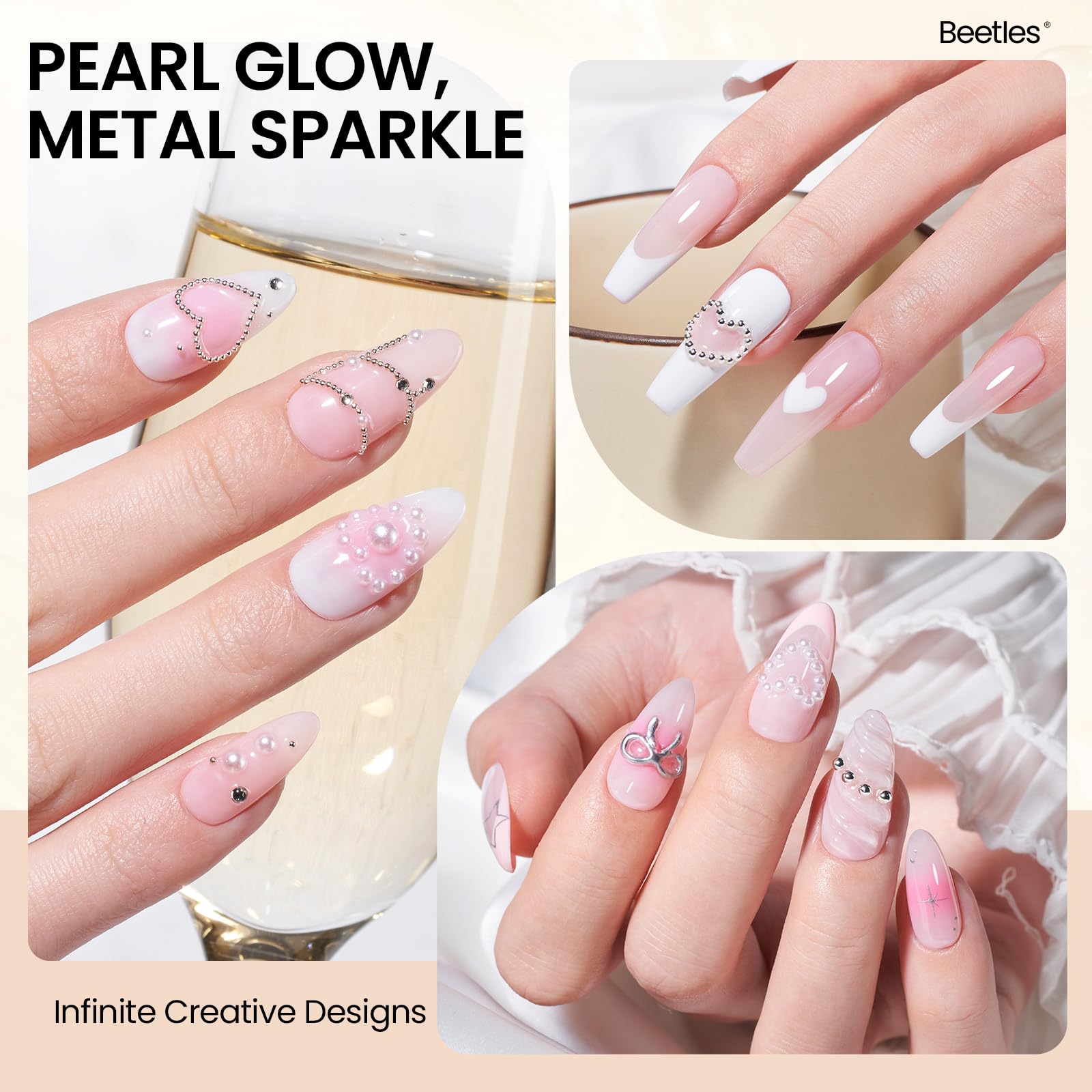 Beetles 3D Nail Charms Gold Silver Nail Beads and White Pearl with 15g Rhinestone Glue Tweezers Pick-up Pencil for Nails Art Metallic Round Caviar Beads White Flatback Pearls Manicure Accessories