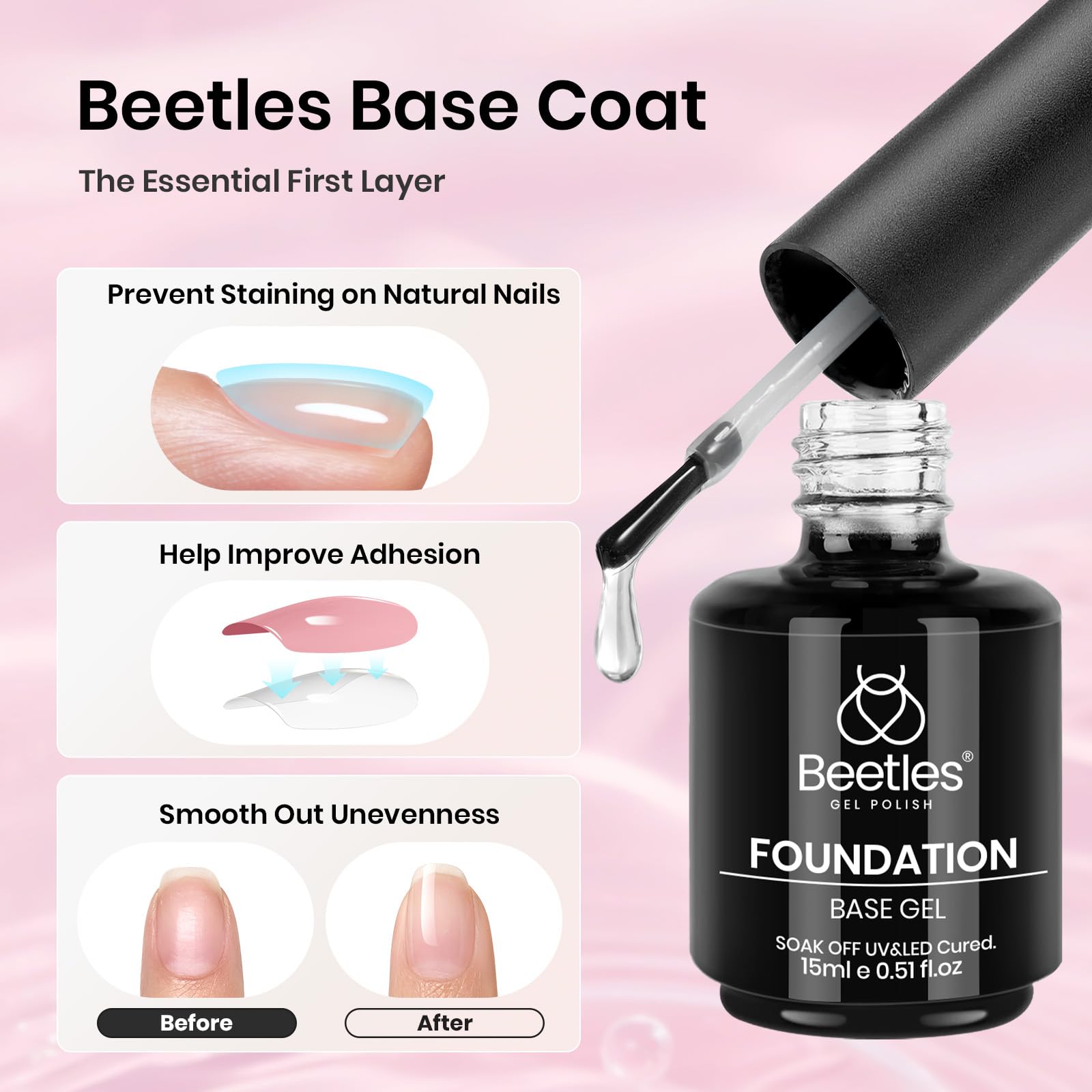 Beetles 3Pcs 15ml Pink Gel Nail Polish and No Wipe Gel Top Coat & Base Coat Set, Soak Off UV Lamp and Long Lasting Top Coat French Manicure Art Design Kit—