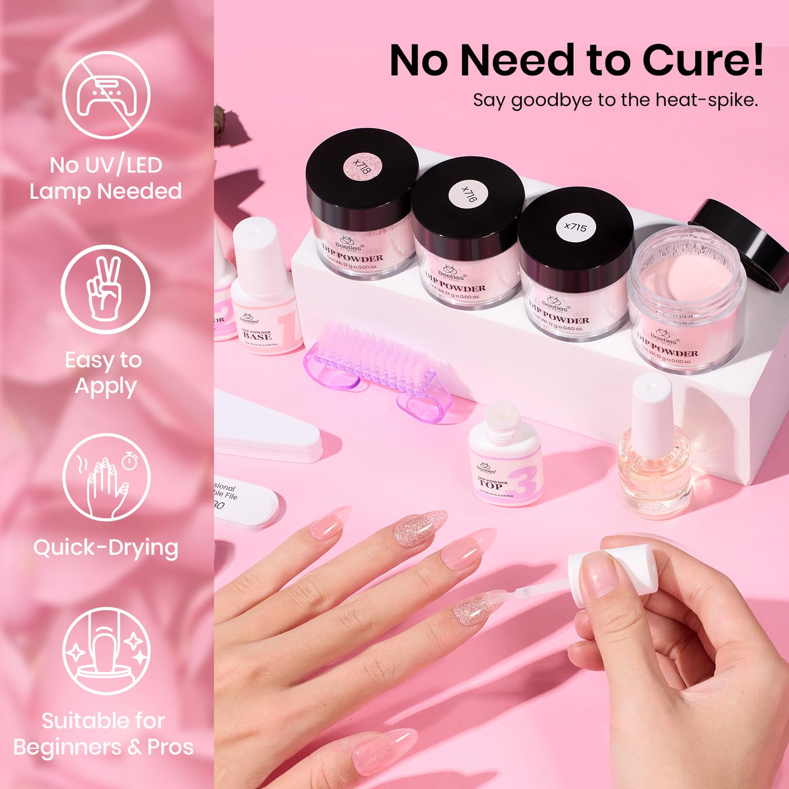 Beetles Dip Powder Nail Kit, All Season Nude White Pink Glitter 4 Colors Dipping Powder with with Base Top Coat Activator and Tools for French Nail Art, Easy DIY Home Manicure Salon Blush Champagne