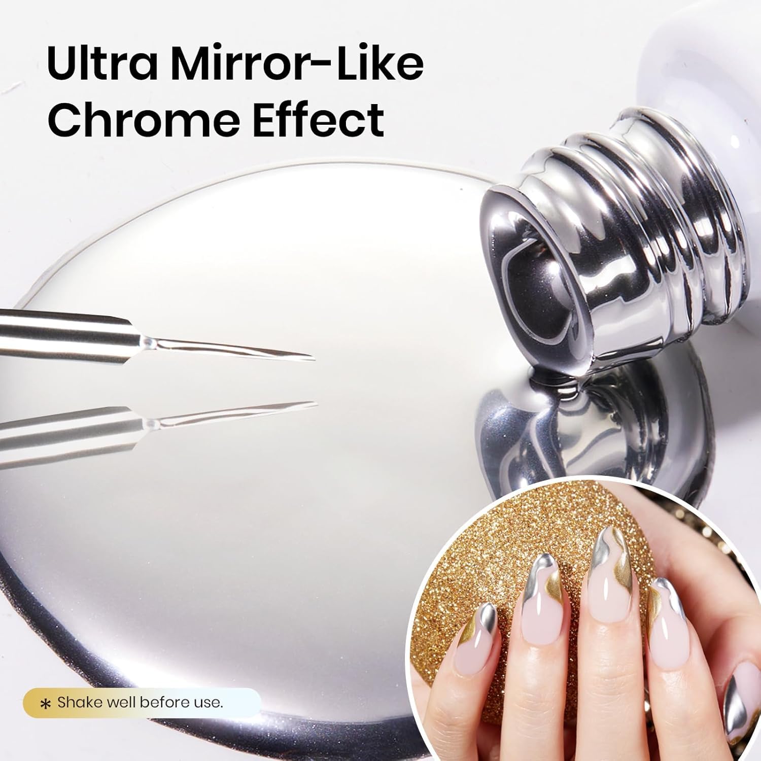 - Chrome Effect: Gel Liner Achieve a high-gloss, reflective surface with a professional-grade chrome effect. Perfect for making your nails stand out on any occasion. Tip: Always shake before use!