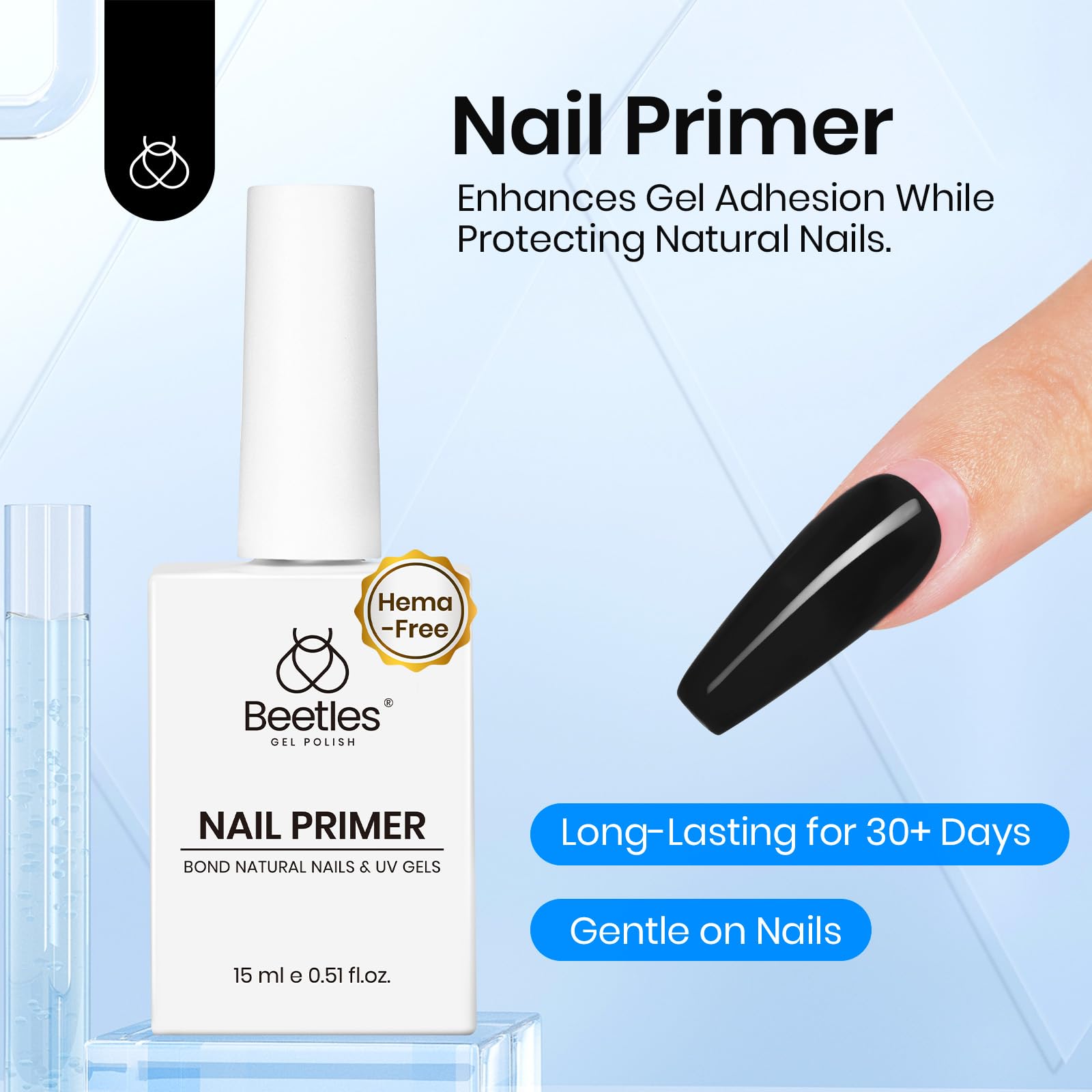 Beetles Nail Dehydrator and Primer - Acid-Free & Hema-Free 2Pcs 15ml Nail Bonding Agent for Gel Polish and Acrylic Nails, Long-Lasting No-Lift Prep for Salon & DIY Manicures