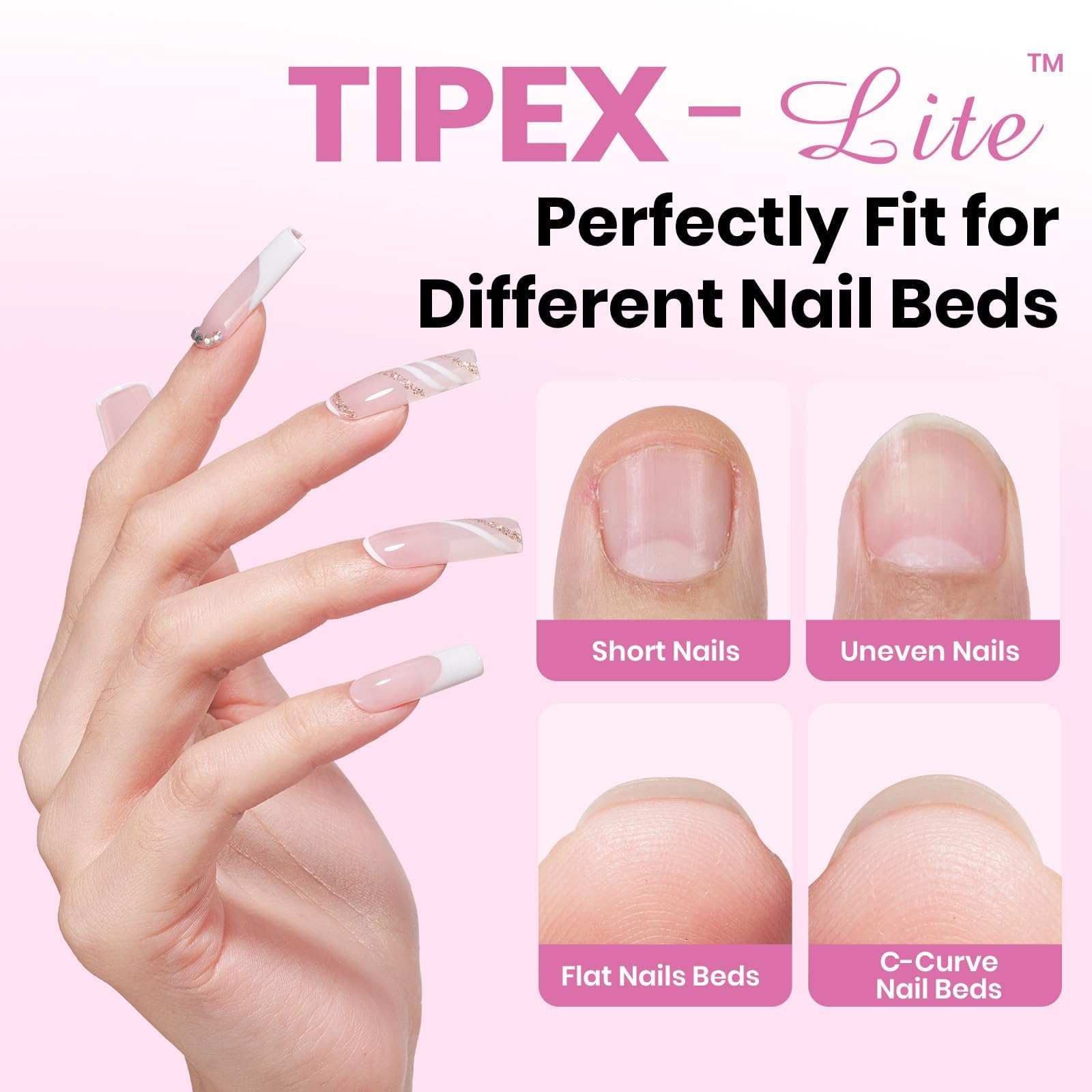 - Natural Fit & Look â Tipex Lite specially designed to match the natural curve of most nail beds (non-overcurved nails). They sit comfortably and blend seamlessly, giving you a clean and natural-looking finish.